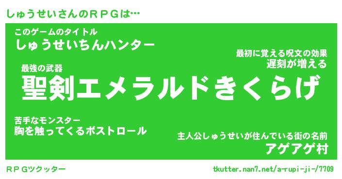 | ヒーロー風カッコイイあだ名 | 『スーパーシュウセイ』『幻影騎士シュ』 |