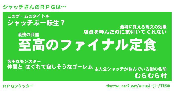 | 料理風あだ名 | 『節約★シャッチと油揚げの玉子丼』 |