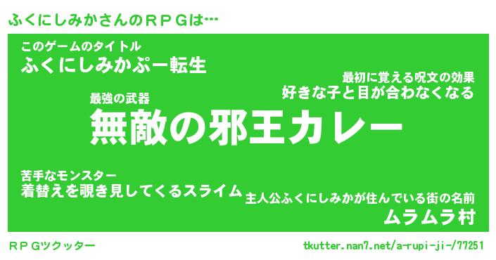 | ヒーロー風カッコイイあだ名 | 『スーパーフクニシミカ』『幻影騎士フク』 |
