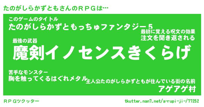 | ツイッター | たのがしらかずともさんのツイッターID『konnyaku_nyan』 |