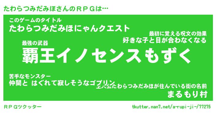 | 肩書あだ名 | 『たわらつみだみほ御曹司』 |