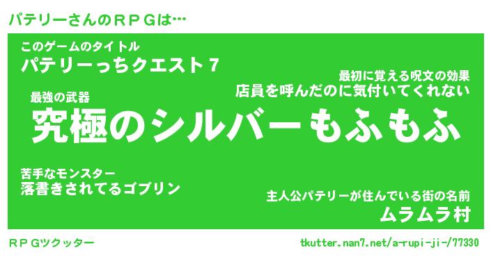 | 男性向けラノベタイトル風あだ名 | 『パテリーの憂鬱』 |