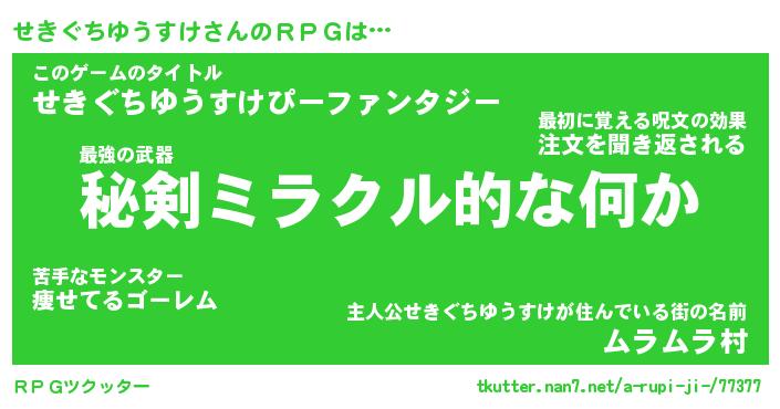 | 胡散臭い通販商品みたいなあだ名 | 『必ず成功するブレスレット…その名も「せきぐちゆうすけ」』 |
