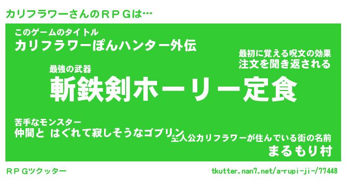 | ヒーロー風カッコイイあだ名 | 『スーパーカリフラワー』『魔戒騎士カリ』 |