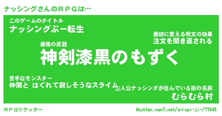 | 男性向けラノベタイトル風あだ名 | 『ナッシングの憂鬱』 |