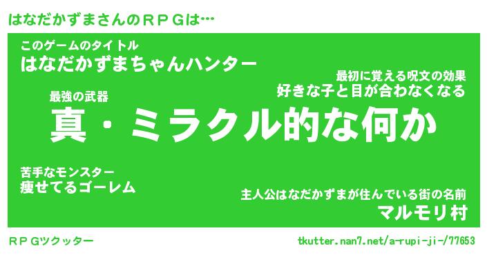 | 伝説のあだ名 | 『封印されし竜騎士はなだかずま』 |