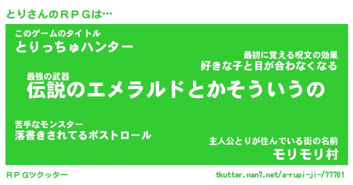 | ポケモン風あだ名 | 『トリチュウ』『トリダネ』『ヒトリ』 |