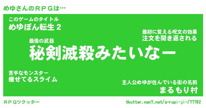| 胡散臭い通販商品みたいなあだ名 | 『必ず成功する霊験あらたかなお札…その名も「めゆ」』 |