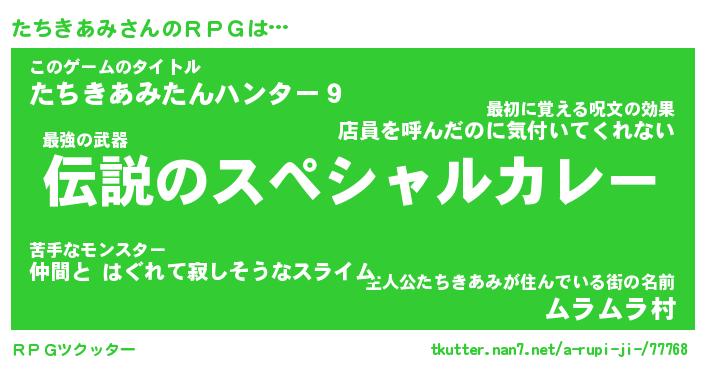 | ファンタジー風あだ名 | 『タチフェル』『エターナルタチキアミー』 |