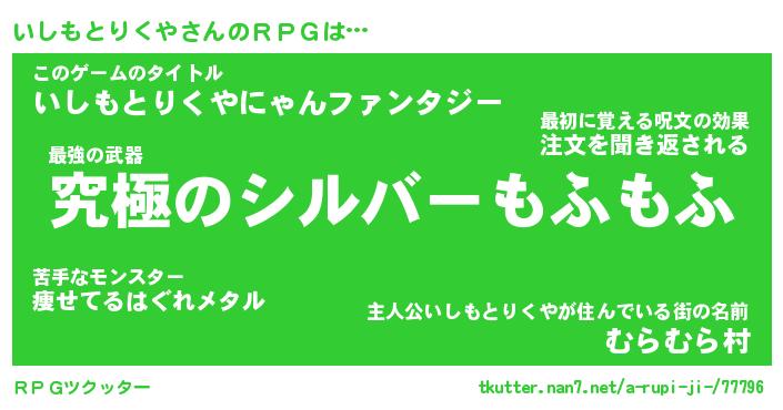 | 胡散臭い通販商品みたいなあだ名 | 『モテモテ間違いなし水晶球…その名も「いしもとりくや」』 |