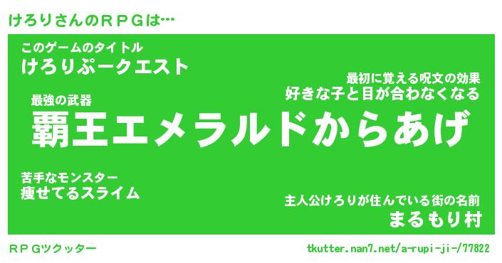 | 意味不明あだ名 | 『ペロリンけろり』『けろりフォーエバー』 |