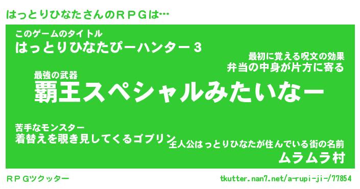 | 胡散臭い通販商品みたいなあだ名 | 『億万長者になれるブレスレット…その名も「はっとりひなた」』 |