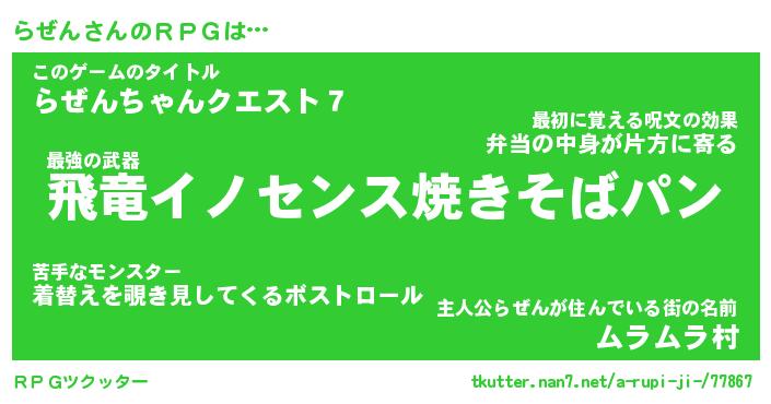 | 男性向けラノベタイトル風あだ名 | 『ラゼンアートオンライン』 |