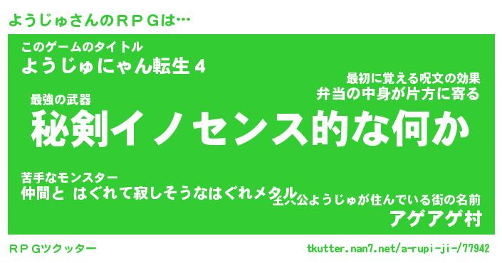 | ファンタジー風あだ名 | 『ヨウフェル』『エターナルヨウジュー』 |