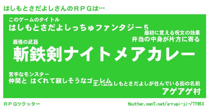 | 胡散臭い通販商品みたいなあだ名 | 『必ず成功する霊験あらたかなお札…その名も「はしもとさだよし」』 |