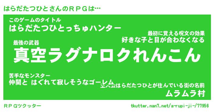 | 伝説のあだ名 | 『封印されし竜騎士はらだたつひと』 |