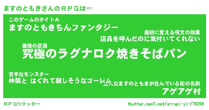 | 男性向けラノベタイトル風あだ名 | 『マスノトモキアートオンライン』 |