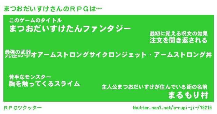| 男性向けラノベタイトル風あだ名 | 『マツオダイスケアートオンライン』 |