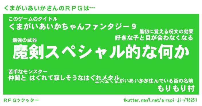 | 胡散臭い通販商品みたいなあだ名 | 『必ず成功するブレスレット…その名も「くまがいあいか」』 |