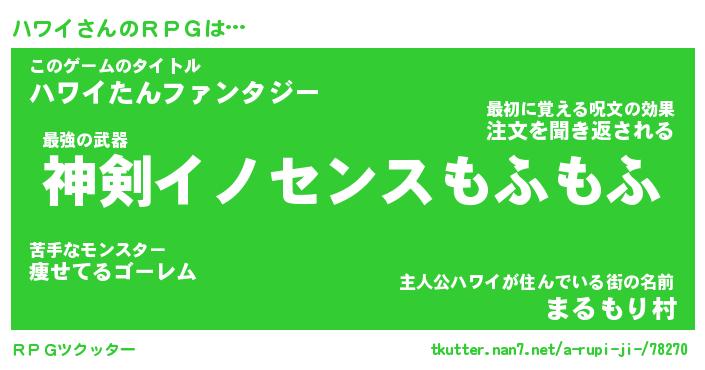 | ファンタジー風あだ名 | 『ハワフェル』『エターナルハワイー』 |