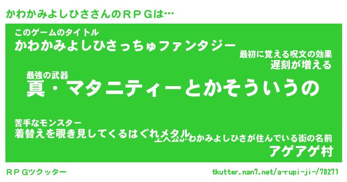 | 肩書あだ名 | 『かわかみよしひさ御曹司』 |