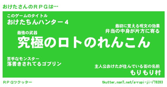 | 男性向けラノベタイトル風あだ名 | 『オケタアートオンライン』 |