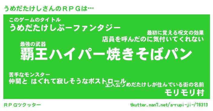 | ヒーロー風カッコイイあだ名 | 『スーパーウメダタケシ』『銀牙騎士ウメ』 |