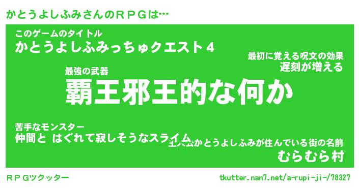 | 肩書あだ名 | 『かとうよしふみ店長』 |