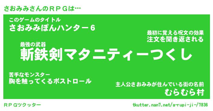 | 伝説のあだ名 | 『伝説のスナイパーさおみみ』 |