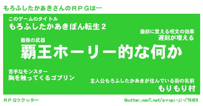 | 男性向けラノベタイトル風あだ名 | 『モロフシタカアキアートオンライン』 |