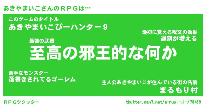 | 男性向けラノベタイトル風あだ名 | 『アキヤマイコアートオンライン』 |