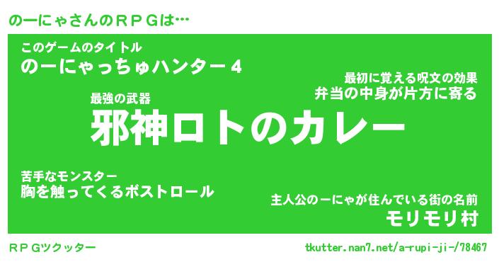 | 伝説のあだ名 | 『封印されし竜騎士のーにゃ』 |