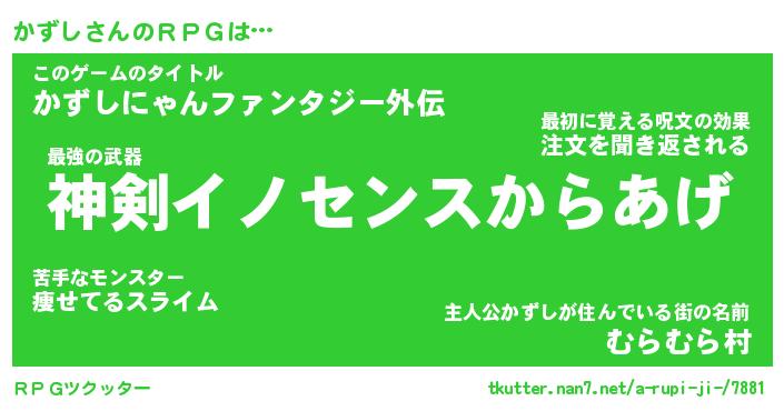 | 男性向けラノベタイトル風あだ名 | 『かずしの憂鬱』 |
