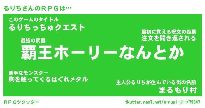| 伝説のあだ名 | 『封印されし傭兵るりち』 |