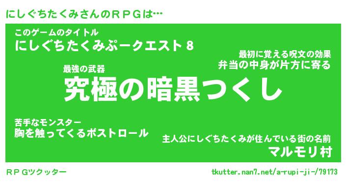 | 男性向けラノベタイトル風あだ名 | 『にしぐちたくみの憂鬱』 |
