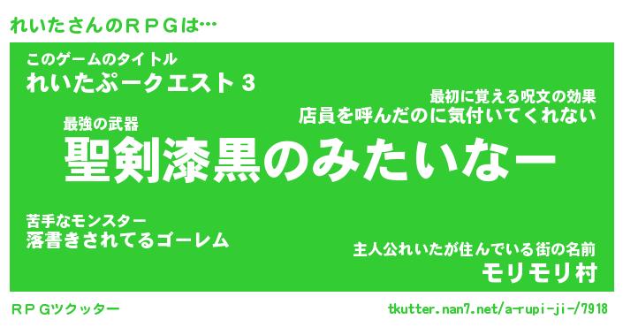 | 男性向けラノベタイトル風あだ名 | 『れいたの憂鬱』 |