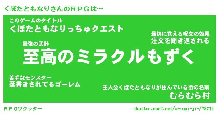 | 男性向けラノベタイトル風あだ名 | 『クボタトモナリアートオンライン』 |