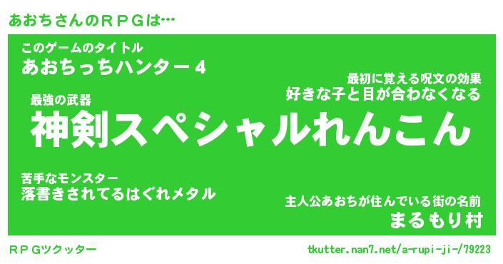 | 伝説のあだ名 | 『不死鳥の竜騎士あおち』 |
