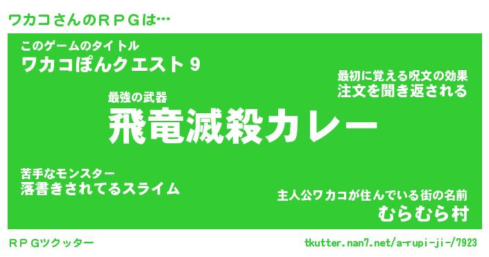 | 男性向けラノベタイトル風あだ名 | 『ワカコアートオンライン』 |
