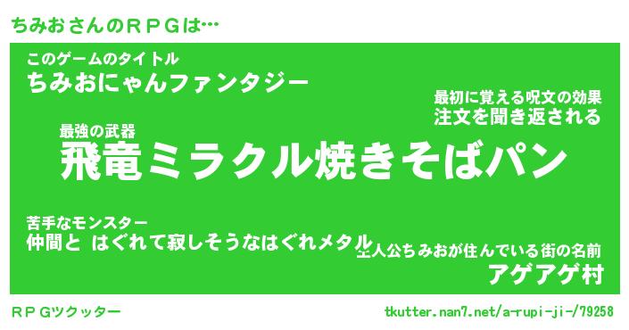 | ヘコむあだ名 | 『ちみにー』『牛乳』『ちみお』 |