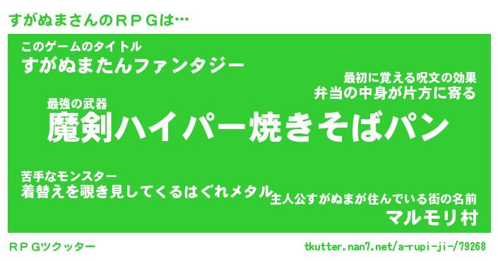 | 胡散臭い通販商品みたいなあだ名 | 『必ず成功するブレスレット…その名も「すがぬま」』 |
