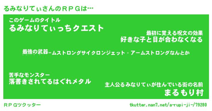 | 胡散臭い通販商品みたいなあだ名 | 『億万長者になれるブレスレット…その名も「るみなりてぃ」』 |