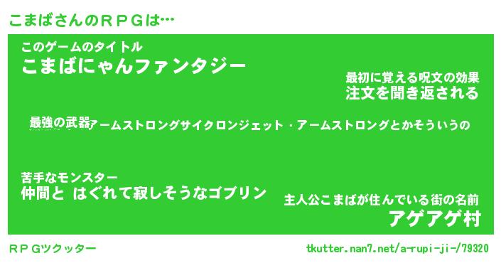 | ファンタジー風あだ名 | 『コマフェル』『エターナルコマバー』 |