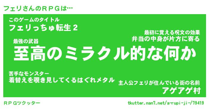 | ファンタジー風あだ名 | 『フェフェル』『エターナルフェリー』 |