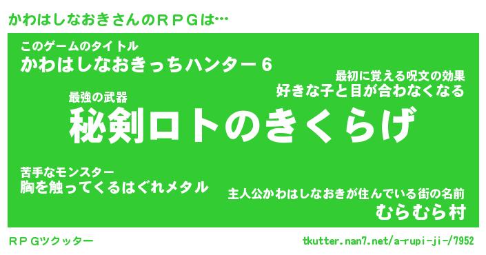 | 伝説のあだ名 | 『伝説の竜騎士かわはしなおき』 |