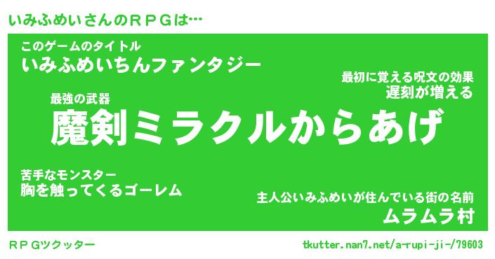 | 伝説のあだ名 | 『伝説の竜騎士いみふめい』 |
