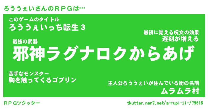 | 伝説のあだ名 | 『封印されし竜騎士ろううぇい』 |