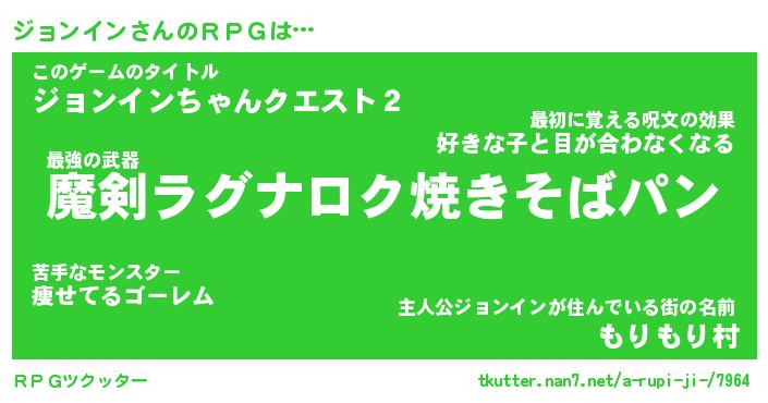 | 男性向けラノベタイトル風あだ名 | 『ジョンインの憂鬱』 |
