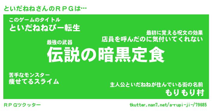 | 男性向けラノベタイトル風あだ名 | 『といだねねの憂鬱』 |