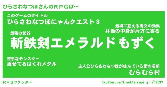 | 伝説のあだ名 | 『伝説のスナイパーひらさわなつほ』 |
